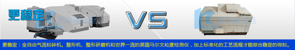 更穩(wěn)定:全自動(dòng)氣流粉碎機(jī),整形機(jī),整形研磨機(jī)和世界一流的英國(guó)馬爾文粒度檢測(cè)儀,加上標(biāo)準(zhǔn)化的工藝流程才能做出穩(wěn)定的微粉。